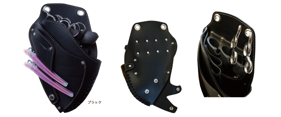 シザーハンズSH-01をベースに、シザー収納ポケットを1丁追加し、シザーと道具が干渉しない工夫をした「仕切り」など、こだわりのモデルです。